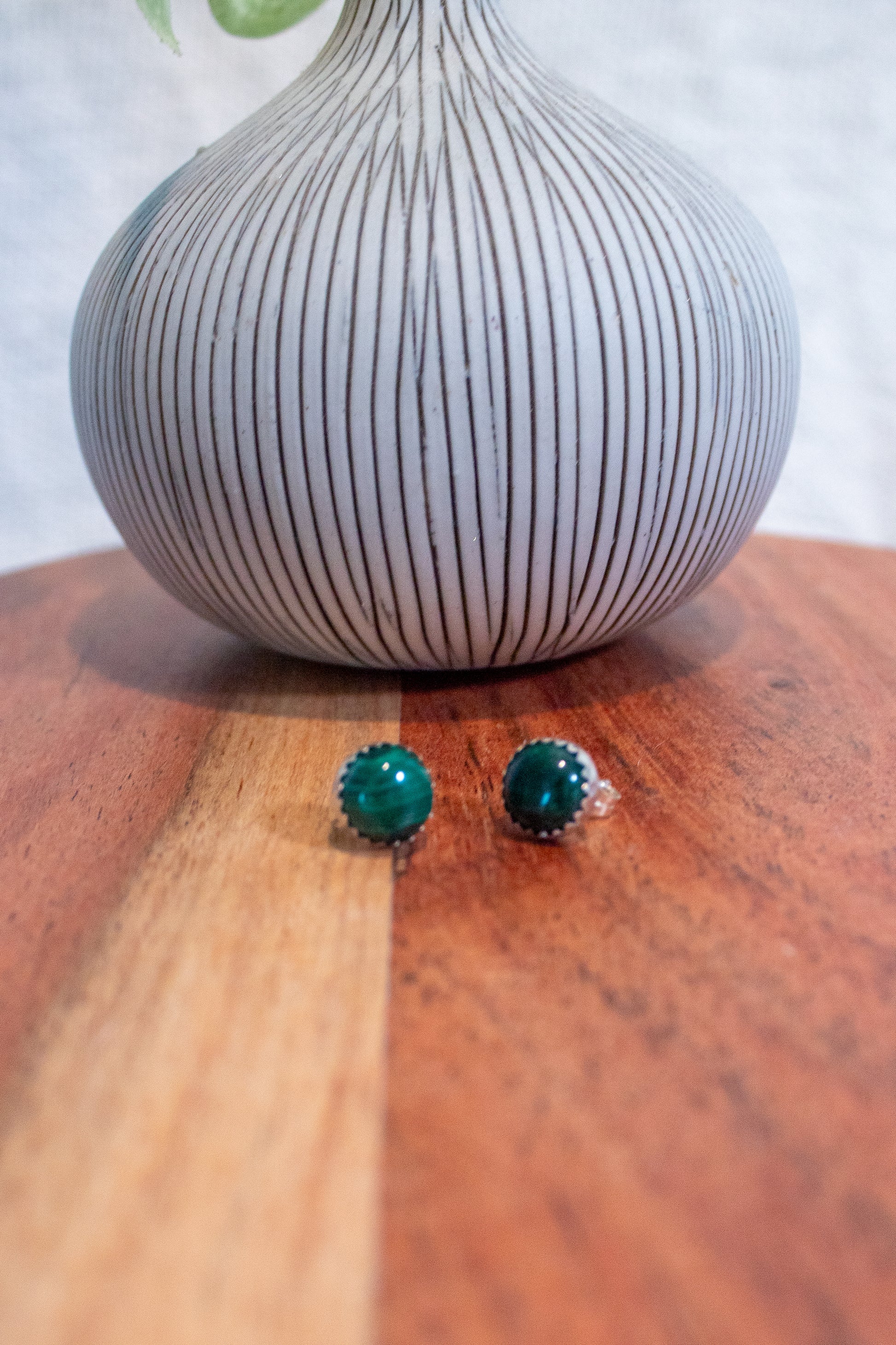 Bring the calm strength of nature to your everyday look with the Evergreen Studs. Featuring rich green malachite cabochons set in sterling silver, these timeless studs capture the beauty of forest landscapes and the grounding energy of the earth.