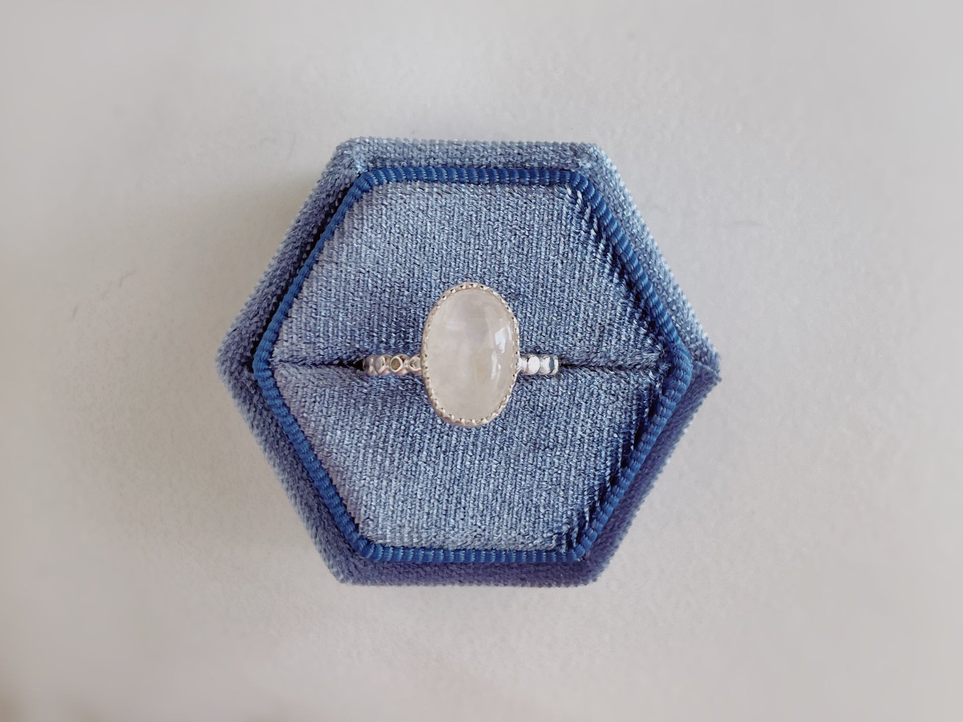 To maintain its beauty, store your sterling silver ring away from moisture, salt air, chlorine, and harsh chemicals. It's best not to wear it during activities like swimming, showering, exercising, or using skincare and hair products. When not in use, keep it in a safe, dry place.